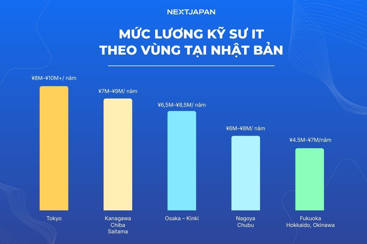 Mức lương kỹ sư IT theo vùng tại Nhật Bản